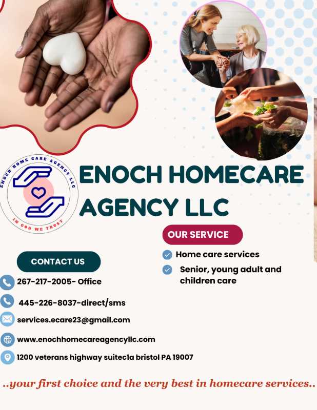 Choose Enoch Home Care Agency LLC for professional, compassionate, and reliable home care services. We are committed to enhancing the lives of our clients by providing care that is not only comprehensive but also respectful and tailored to individual preferences. Let us help you maintain your independence and continue to enjoy life in the comfort of your home.